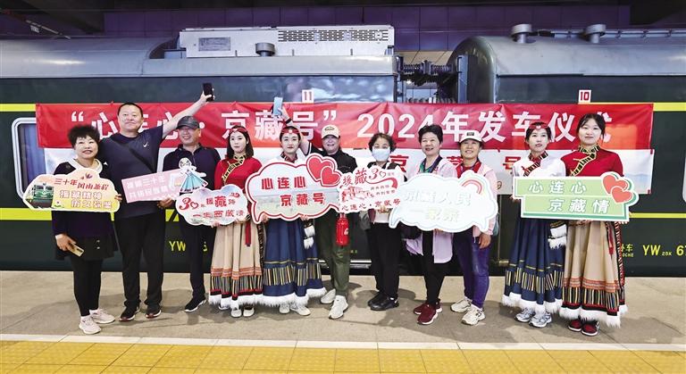 為支持西藏立足特色資源發(fā)展旅游產(chǎn)業(yè),在北京對(duì)口支援拉薩30周年之際,5月19日,由文化和旅游部、中國國家鐵路集團(tuán)指導(dǎo),中共拉薩市委員會(huì)、拉薩市人民政府、北京援藏指揮部、中國鐵路北京局集團(tuán)有限公司主辦,中共拉薩市城關(guān)區(qū)委員會(huì)、拉薩市城關(guān)區(qū)人民政府、中國鐵道旅行社集團(tuán)有限公司承辦的“心連心·京藏號(hào)”旅游列車在北京發(fā)車。