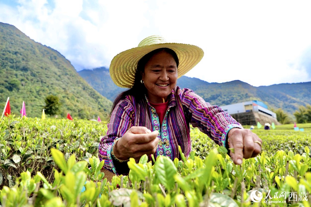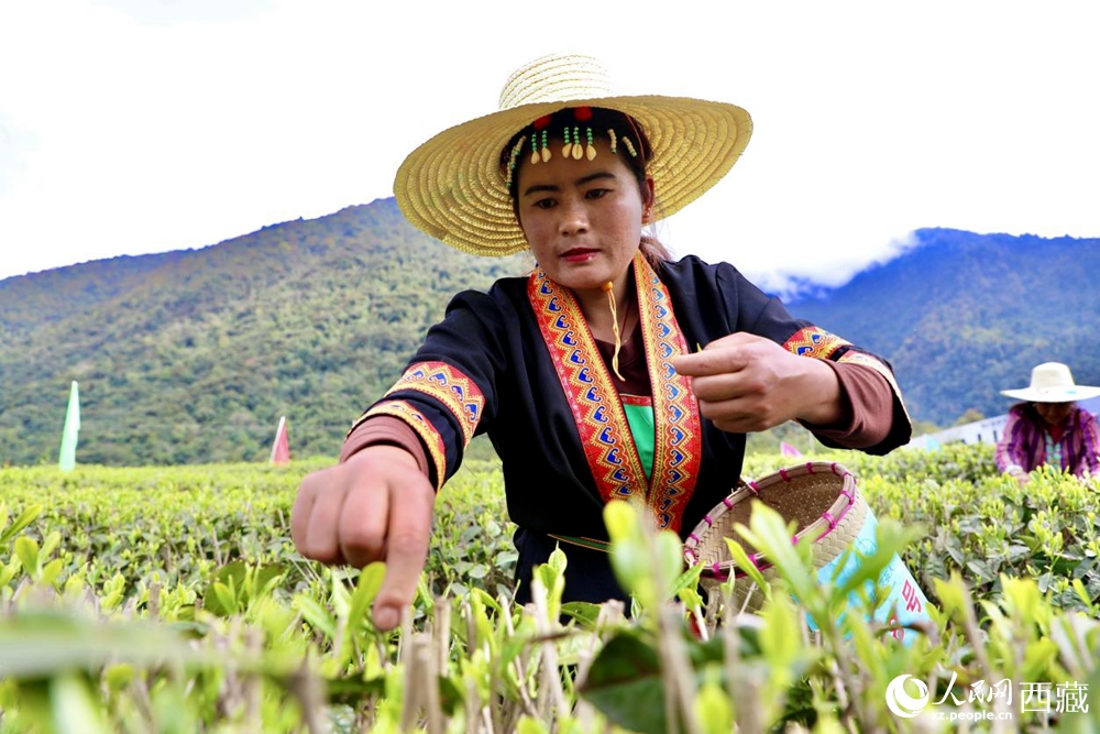 墨脫縣門(mén)巴族茶農(nóng)采摘茶葉。人民網(wǎng)記者 次仁羅布攝