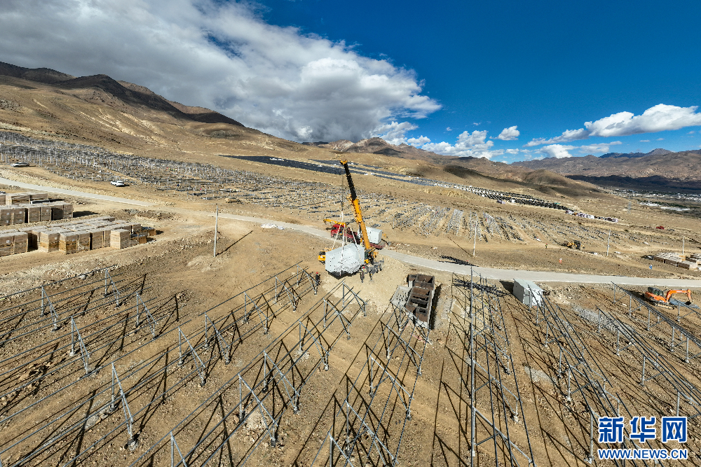 在建設中的110千伏協(xié)合措美縣20(MW)并網(wǎng)光伏電站項目(無人機照片)。新華網(wǎng) 旦增努布 攝