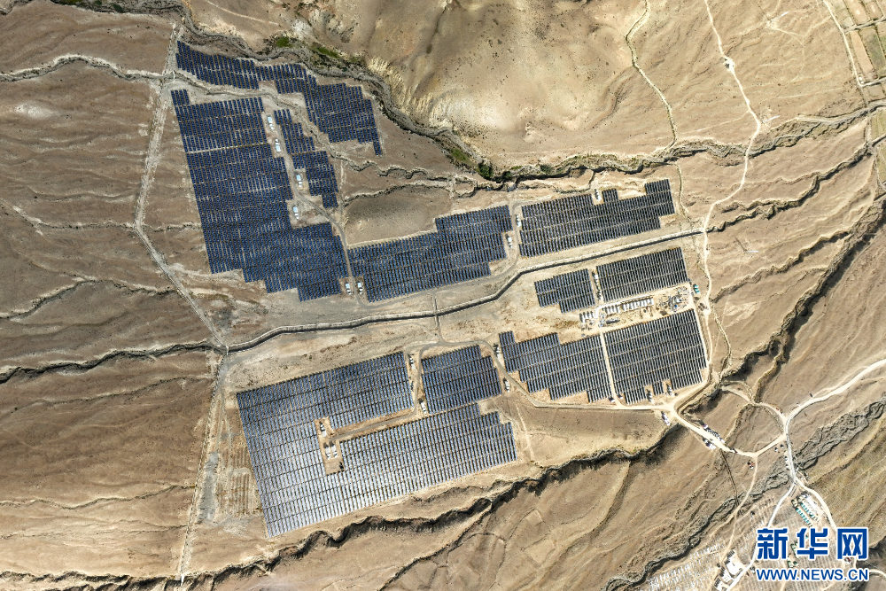 措美縣縣城附近的光伏電站(無人機照片)。新華網(wǎng) 旦增努布 攝