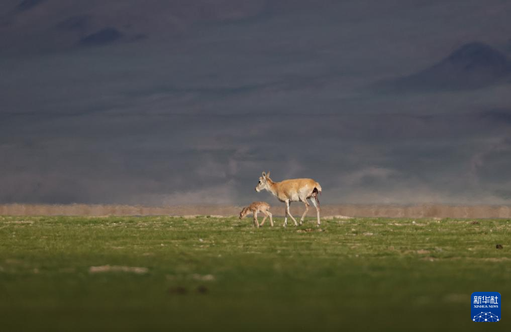 魯確塘草原上的藏羚羊母子(6月16日攝)。新華社記者 旦增尼瑪曲珠 攝