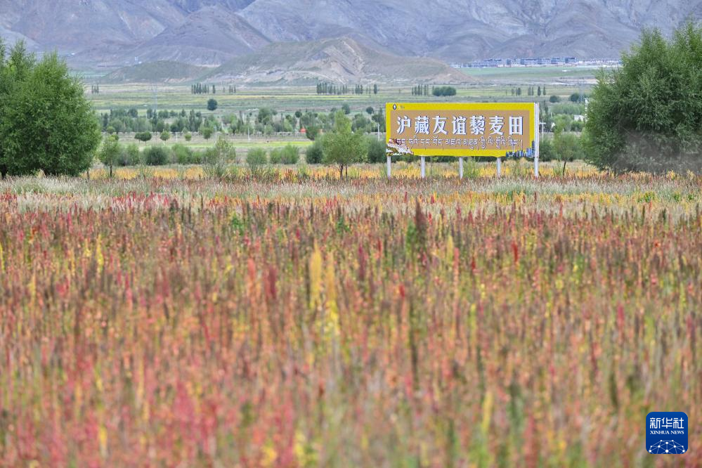 這是在西藏日喀則市薩迦縣扯休鄉(xiāng)拍攝的高原藜麥種植基地內(nèi)的藜麥田(9月4日攝)。新華社記者 孫瑞博 攝 ??