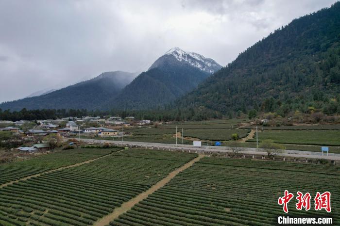 圖為12月13日,西藏林芝波密縣易貢雪山、茶田風(fēng)光。(無人機(jī)畫面)記者 江飛波 攝