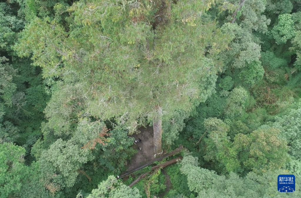 這是12月21日拍攝的西藏墨脫縣的一棵高達(dá)76.8米的大樹(shù)(無(wú)人機(jī)照片)。新華社記者 丁汀 攝