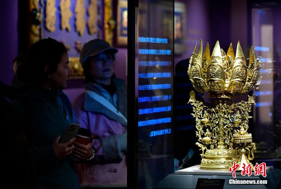 以“見證與守望——鑄牢中華民族共同體意識主題展”為主題的展覽近日亮相西藏自治區(qū)拉薩市布達拉宮珍寶館。本次主題展精選100余件文物珍品,展覽通過文物、古籍及布達拉宮的傳承與發(fā)展,講述各民族交往交流交融的故事。圖為1月2日,觀眾欣賞展覽中的明代“大明永樂年施”款八瓣蓮花大威德金剛曼陀羅。中新社記者 李林 攝