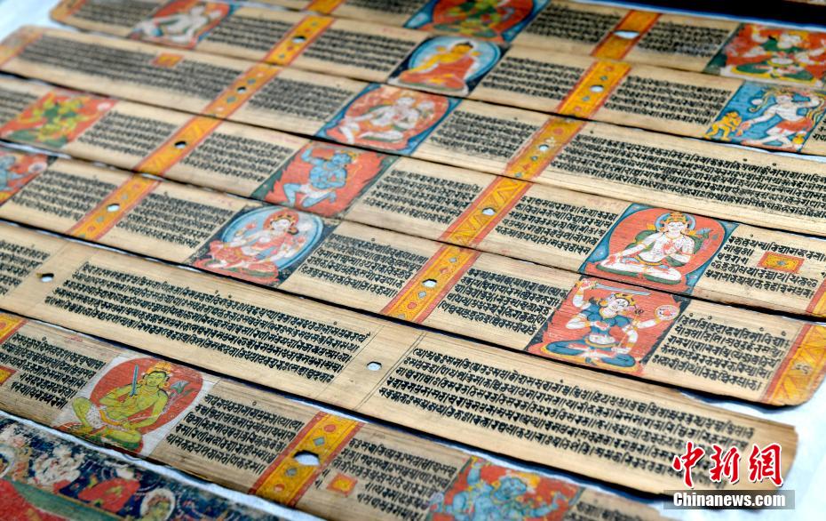 以“見證與守望——鑄牢中華民族共同體意識主題展”為主題的展覽近日亮相西藏自治區(qū)拉薩市布達拉宮雪城珍寶館。本次主題展精選100余件文物珍品,展覽通過文物、古籍及布達拉宮的傳承與發(fā)展,講述各民族交往交流交融的故事。圖為1月2日,展覽中的13世紀《般若八千頌》貝葉經寫本。中新社記者 李林 攝