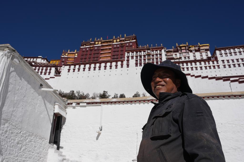 維修科工匠扎西在布達拉宮前。新華社記者 晉美多吉 攝