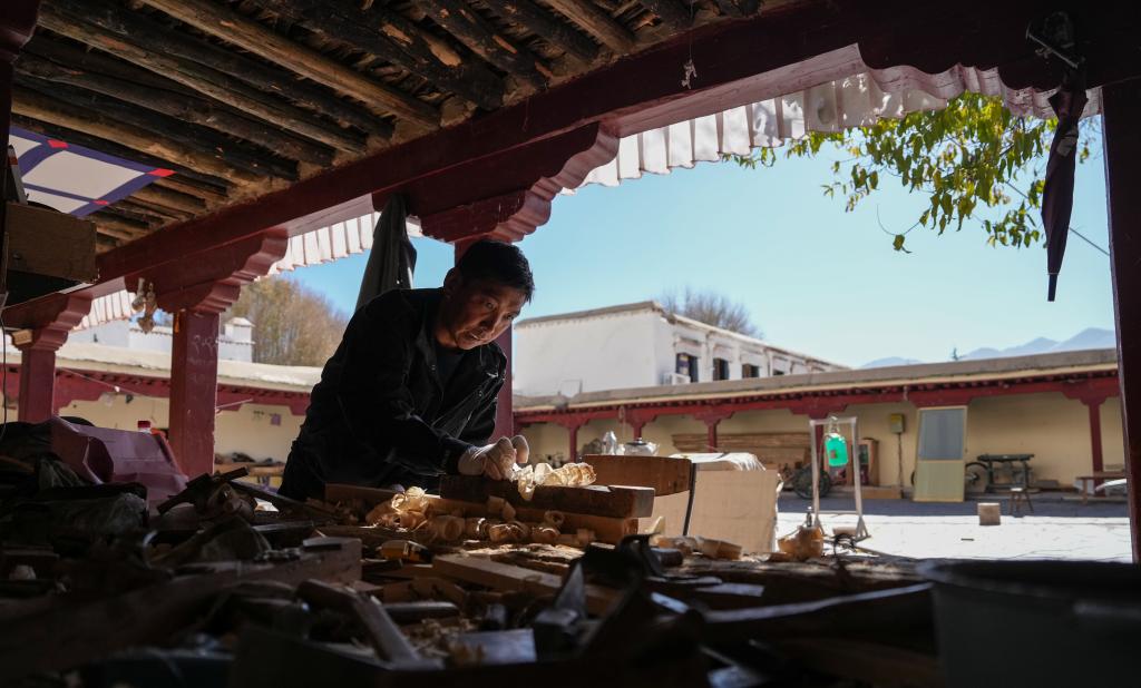 木匠普瓊正在制作布達拉宮修繕所需木構(gòu)件。新華社記者 晉美多吉 攝