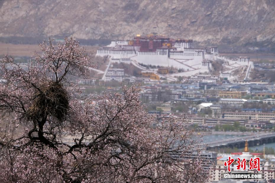 3月下旬,高原已是一片春意。西藏拉薩市區(qū)拉薩河南岸慈覺林的古桃樹進入盛花期,3月30日恰逢周末,不少市民游客前往賞花“打卡”,在桃樹下野餐等,享受高原春日風(fēng)光。圖為3月30日,慈覺林的桃花和遠(yuǎn)處的布達(dá)拉宮。江飛波 攝