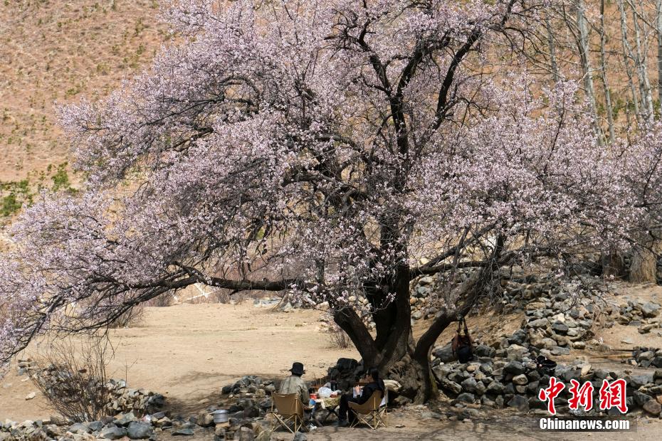 3月下旬,高原已是一片春意。西藏拉薩市區(qū)拉薩河南岸慈覺林的古桃樹進入盛花期,3月30日恰逢周末,不少市民游客前往賞花“打卡”,在桃樹下野餐等,享受高原春日風(fēng)光。圖為3月30日,民眾在拉薩慈覺林桃樹下野餐,享受悠閑時光。江飛波 攝