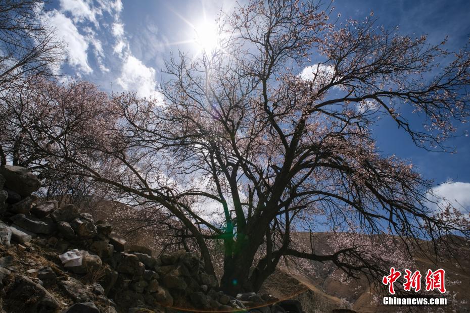 3月下旬,高原已是一片春意。西藏拉薩市區(qū)拉薩河南岸慈覺林的古桃樹進入盛花期,3月30日恰逢周末,不少市民游客前往賞花“打卡”,在桃樹下野餐等,享受高原春日風(fēng)光。圖為3月30日,拉薩慈覺林的桃花。桃樹上是藏族民眾在藏歷新年時綁的經(jīng)幡。江飛波 攝
