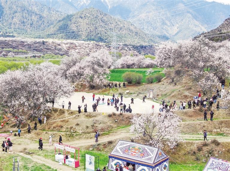 東風(fēng)吹皺尼洋河的綠波,桃花粉黛染遍藏東南的山坡。4月3日,為期一個(gè)月的林芝第二十二屆桃花旅游文化節(jié)如約而至,吸引五湖四海的游客踏春而來。林芝市以花為媒,精心籌備,將“寵愛游客”這條主線貫穿始終,動(dòng)員全市各縣(市、區(qū))各界力量,精心推出花車巡游、“桃花仙子”評(píng)選、大峽谷賞花、非遺打鐵花、書畫聯(lián)展、無人機(jī)表演、“你好桃花”音樂嘉年華、特色產(chǎn)品展銷、“春分桃夭”免費(fèi)美食體驗(yàn)等累計(jì)40余項(xiàng)精彩活動(dòng),涵蓋“吃喝玩樂游購?qiáng)省钡扔慰团d趣所及的方方面面,主打一個(gè)賞花游園的氛圍感、熱鬧勁兒,讓廣大游客來到林芝、愛上林芝,傳遞林芝的美麗、感受林芝人民的熱情。圖片均由 劉楓 謝筱純 攝