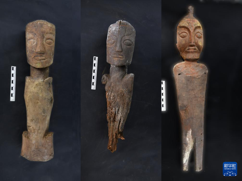 桑達(dá)隆果墓地出土的木俑。(西藏自治區(qū)文物保護(hù)研究所供圖)