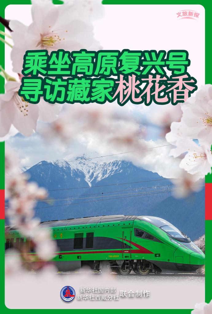 春日清晨,C881次高原復(fù)興號動車組沿著拉林鐵路穿行于雪山峽谷之間時,可以看到窗外的野桃花如粉色云霞般漫山綻放。車廂內(nèi),藏族阿媽與背著相機(jī)的旅人一同望向窗外,桃花遍野,雪山迎光。