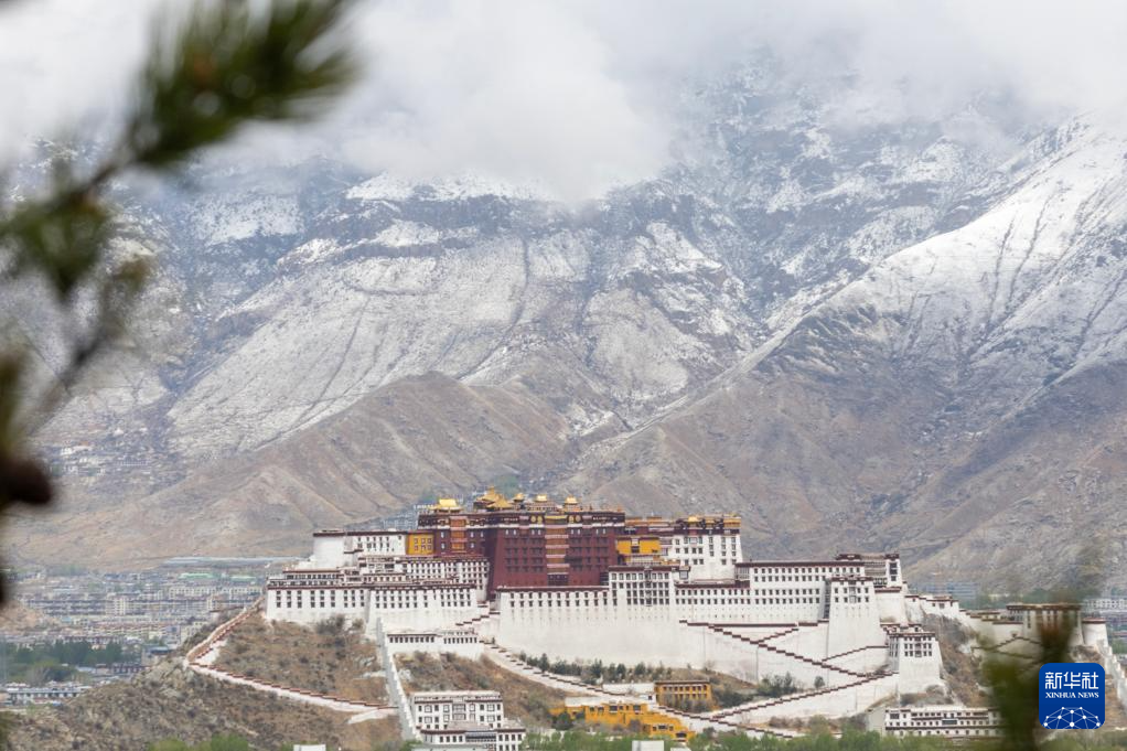 4月14日晚間,拉薩城區(qū)降下春雪,白雪與滿城的新綠相映成趣。