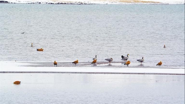 野鴨棲息在林周縣卡孜水庫(kù)。