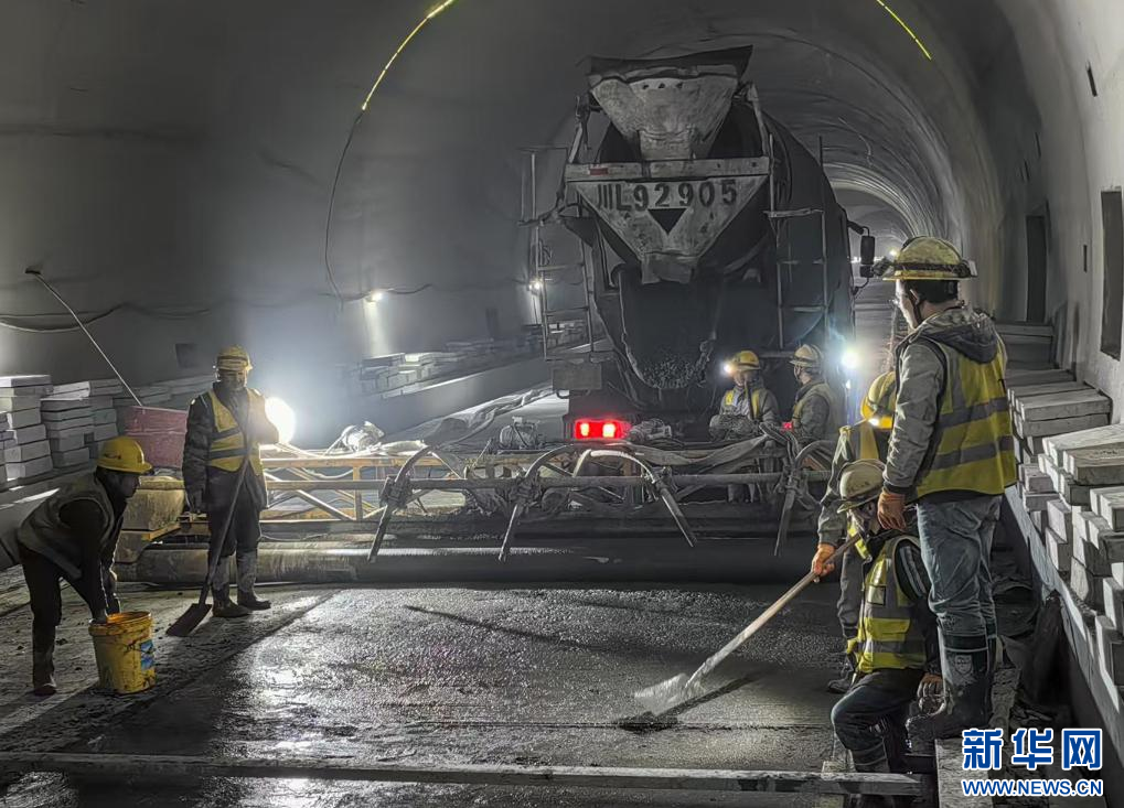 5月2日,工人們在然烏隧道進(jìn)行混凝土路面澆筑工作。劉強(qiáng) 攝