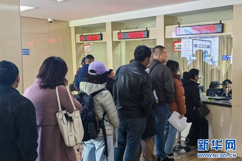 辦證大廳內(nèi),前來辦證的人員正在排隊。仁青旺堆 攝