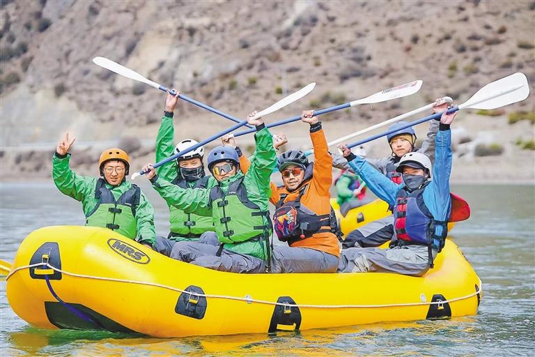 “五一”假期,墨竹工卡唐加鄉(xiāng)騎漂行活動(dòng)舉行,近30位戶(hù)外運(yùn)動(dòng)愛(ài)好者體驗(yàn)了13公里騎行、4公里徒步、10公里漂流等項(xiàng)目。圖為戶(hù)外運(yùn)動(dòng)愛(ài)好者體驗(yàn)10公里漂流項(xiàng)目。記者 鹿麗娟 攝