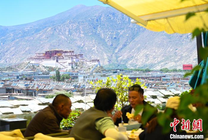 6月22日,拉薩市中心的一家觀(guān)景餐廳,可以眺望布達(dá)拉宮。中新社記者 趙朗 攝