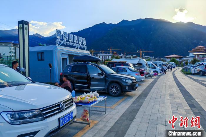 6月26日傍晚,西藏林芝宇拓公園自駕露營(yíng)地內(nèi)停放著來(lái)自中國(guó)各地的進(jìn)藏車(chē)輛,該營(yíng)地設(shè)有兩處公共廚房和浴室,方便自駕游客休整。中新社記者 江飛波 攝