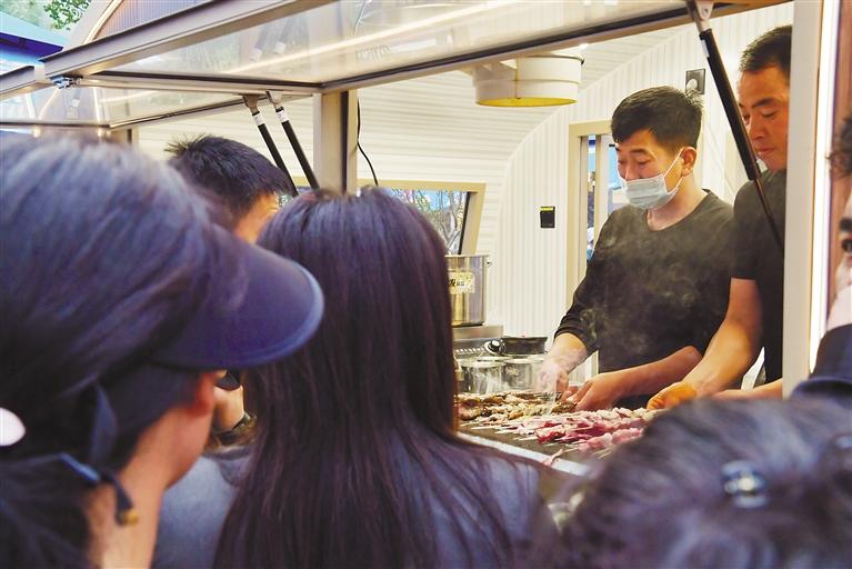 圖為小吃攤販正在制作餐食。記者 索朗旺久 攝