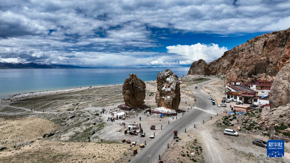 7月16日拍攝的納木錯(cuò)扎西島景區(qū)風(fēng)光(無(wú)人機(jī)照片)。新華社記者 晉美多吉 攝 ??