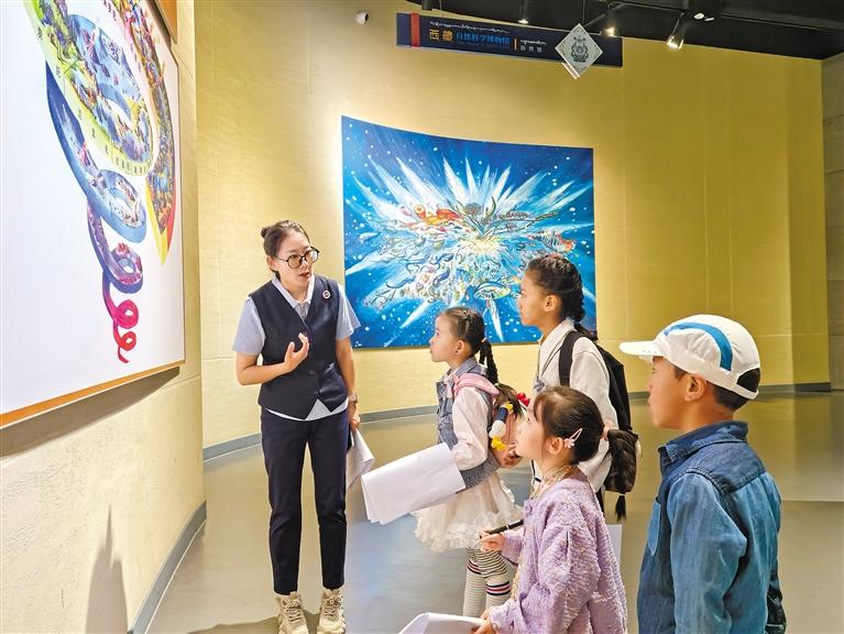 圖為西藏自然科學(xué)博物館工作人員為參加活動的孩子們作現(xiàn)場講解。 記者 楊小娟 攝