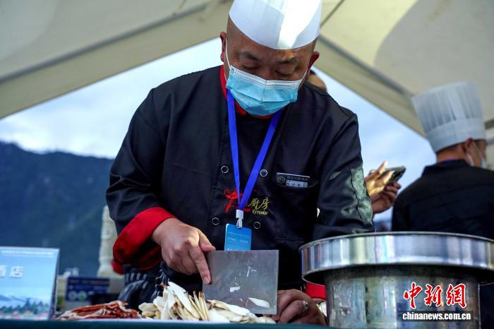 圖為2025年林芝松茸美食文化節(jié)暨特色商品展銷活動(dòng)期間,廚師現(xiàn)場制作松茸菜品。林芝市巴宜區(qū)城鄉(xiāng)供銷有限公司供圖