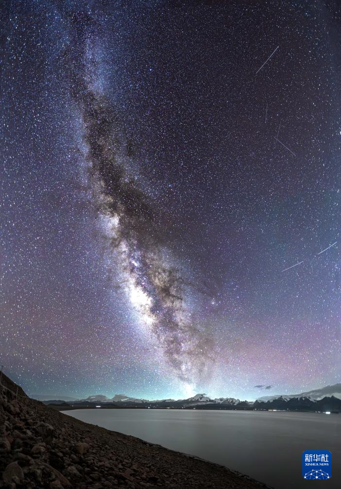 這是在佩枯錯(cuò)拍攝的銀河(8月14日攝)。周邊是英仙座流星雨的幾顆流星。新華社發(fā)(馬理朝攝) ??
