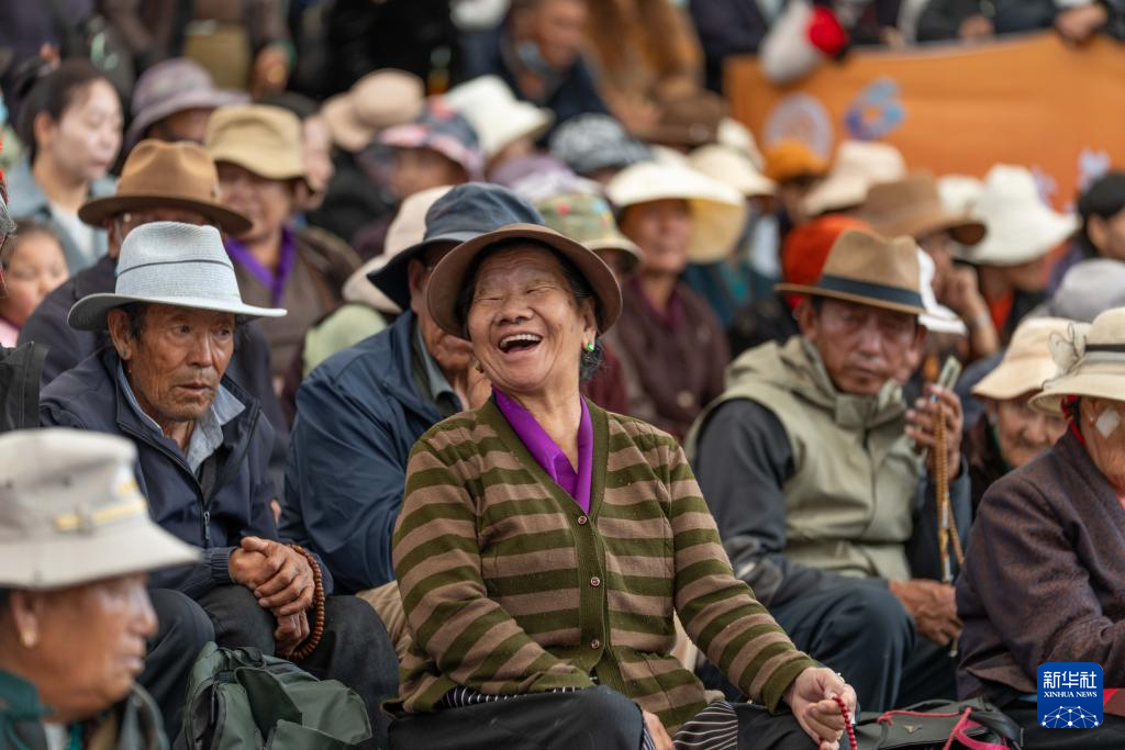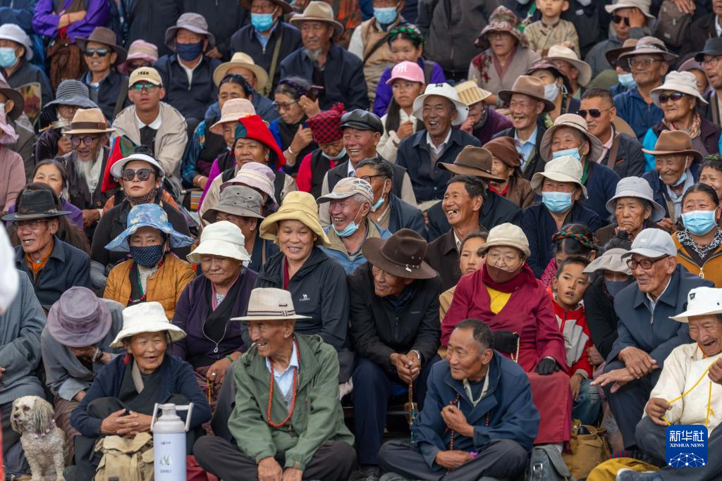 8月24日,群眾在拉薩宗角祿康公園觀看藏戲。新華社記者 旦增尼瑪曲珠 攝