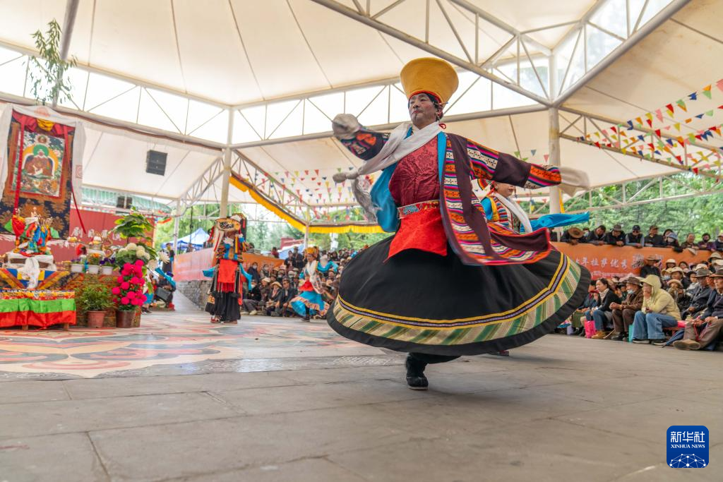 這是8月24日在拉薩宗角祿康公園拍攝的藏戲展演現(xiàn)場。新華社記者 旦增尼瑪曲珠 攝