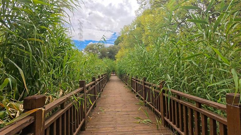 每天清晨和傍晚,拉魯濕地的木棧道上總是熱鬧的。63歲的邊巴次仁大叔幾乎天天來散步,看著動物們在蘆葦叢中嬉戲,遠處布達拉宮熠熠生輝,他總?cè)滩蛔「袊@:“以前這里有些地方是爛泥塘,現(xiàn)在水更清、鳥更多,呼吸著濕潤的空氣,就是我們最平常的幸福。”退休教師達瓦常帶著孫子來喂候鳥,孩子興奮地數(shù)著黑頸鶴的數(shù)量,達瓦則回憶著:“小時候這里只是城郊的荒灘,如今成了國際認可的生態(tài)寶地,看著真讓人高興?!睗竦乩锏乃参锖臀⑸镞€能過濾降解污染物,讓流過的水變得更干凈,為城市水系提供了源源不斷的清潔水源。
