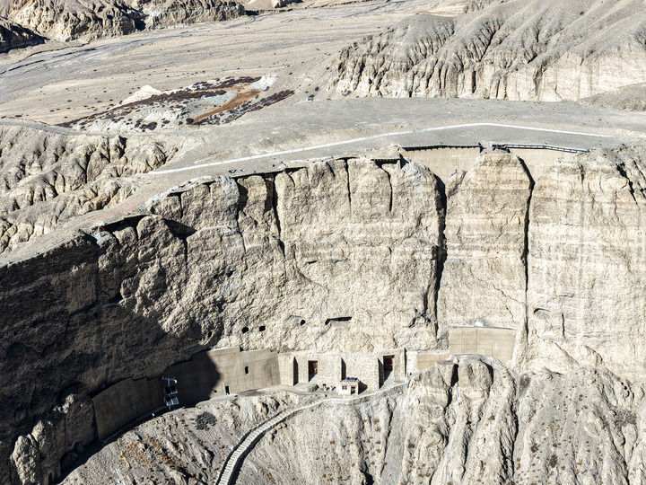 1987年,那時(shí)的東嘎石窟尚無人問津。甚至沒有像樣的路,阿旺米朗硬生生在陡峭的山體上走出了一條路。那會(huì)兒,石窟還有些滲水,他獨(dú)自一人扛著塑料布從山的另一邊繞上陡峭的山頂,在海拔4000多米的山頂為洞窟做防水措施;高原漫長(zhǎng)的寒冬里,他能依靠的熱源只有手中的酥油燈——但沒過多久,他就發(fā)現(xiàn)酥油燈會(huì)熏黑墻壁,他便自己在石窟外搭了個(gè)簡(jiǎn)單的房屋。
