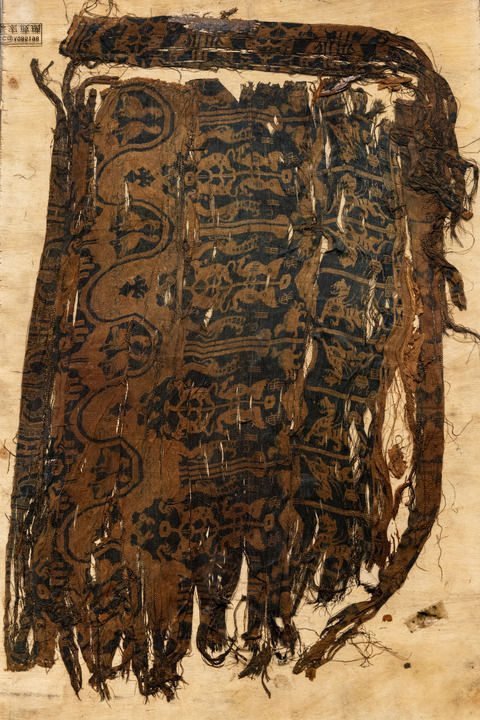 這是阿里故如甲木墓地出土的漢代“王侯鳥獸紋錦”,上有“宜王侯”字樣。(受訪者供圖)