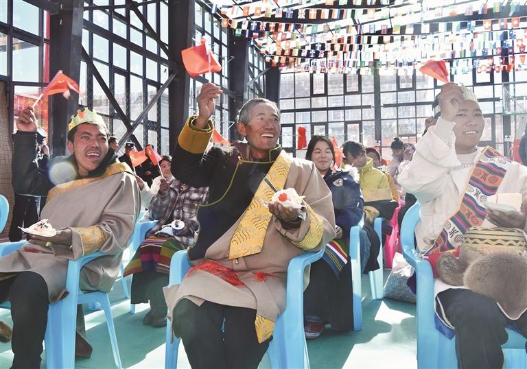 而在距離活動現(xiàn)場不到一公里的郭加鄉(xiāng)切村農(nóng)村幸福院,工作人員組織了一場集體生日,老人們也正捧著蛋糕,開心地品嘗著。
