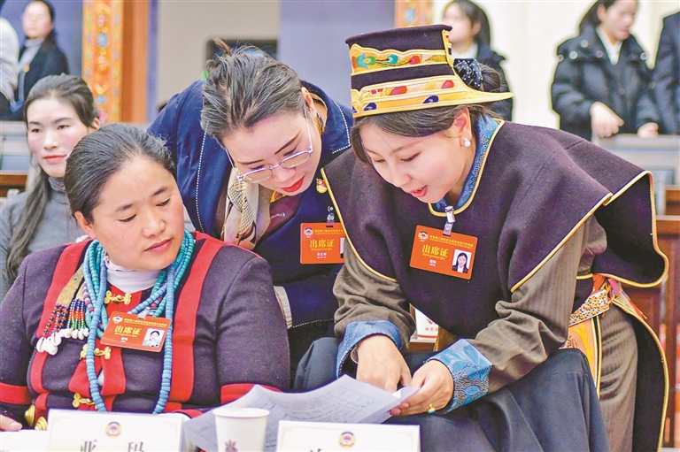 林芝市人大代表認(rèn)真聆聽政府工作報(bào)告。