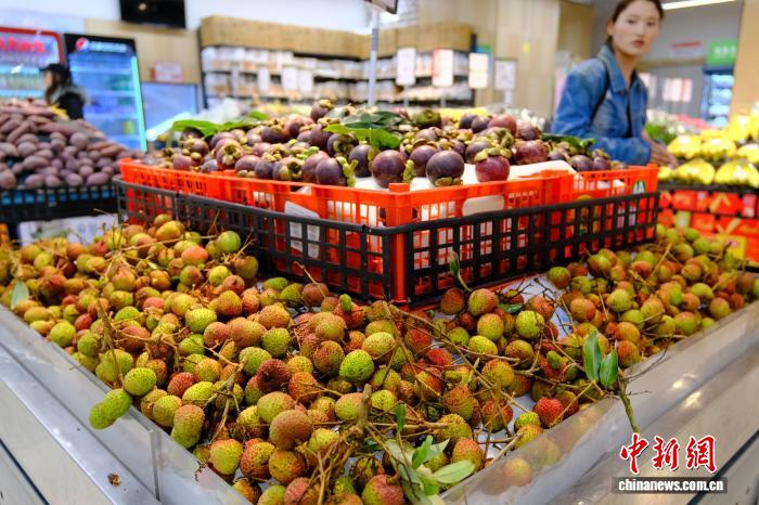 資料圖為2025年5月27日,西藏拉薩一連鎖超市銷售來自海南的“妃子笑”荔枝。江飛波 攝