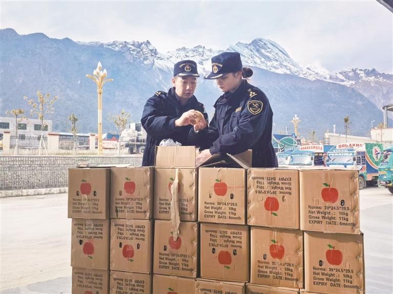 拉薩海關(guān)關(guān)員監(jiān)管驗放出口農(nóng)產(chǎn)品。圖由拉薩海關(guān)提供
