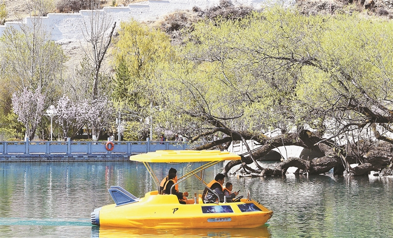 宗角祿康公園內(nèi),春日風(fēng)光靈動(dòng)又愜意。湖面碧波蕩漾,嫩綠垂柳輕拂水面,一艘艘游船悠然穿行于碧波之上,船上游客歡聲笑語(yǔ)不斷。岸邊廣場(chǎng)上,歡快的音樂(lè)此起彼伏,不少市民伴著節(jié)拍跳起健身操,舞步輕盈、神采飛揚(yáng),悠然閑適的靜態(tài)美景與熱情洋溢的動(dòng)態(tài)活力相互交融,盡顯高原春日別樣風(fēng)情。