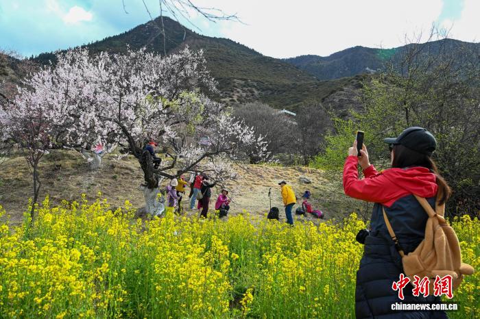 4月3日,游客在嘎拉村拍照留念。西藏林芝市嘎拉村被譽(yù)為“林芝桃花第一村”,是林芝市最佳的賞花地之一。中新社記者 貢嘎來松 攝