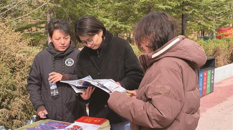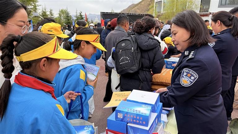 沿著公園步道,拉薩市人民防線辦公室 、公安局、司法局、生態(tài)環(huán)境局等多個(gè)部門,依次設(shè)立了宣傳展位。工作人員穿梭在人群中,耐心地向過往群眾發(fā)放宣傳手冊(cè),細(xì)致講解網(wǎng)絡(luò)安全、防火防災(zāi)、生態(tài)保護(hù)、防范詐騙等貼近日常的安全知識(shí),路過的市民紛紛駐足聆聽、主動(dòng)咨詢,時(shí)不時(shí)拿起宣傳資料翻閱。