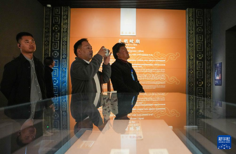 4月17日,西藏全區(qū)博物館館長培訓班的學員在西藏博物館現(xiàn)場交流學習。新華社記者 晉美多吉 攝