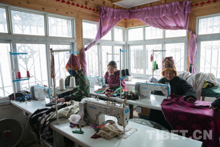 圖為在昌都市婦聯(lián)“婦女創(chuàng)業(yè)就業(yè)基地”里加工服飾的藏族婦女 攝影:鄭朔
