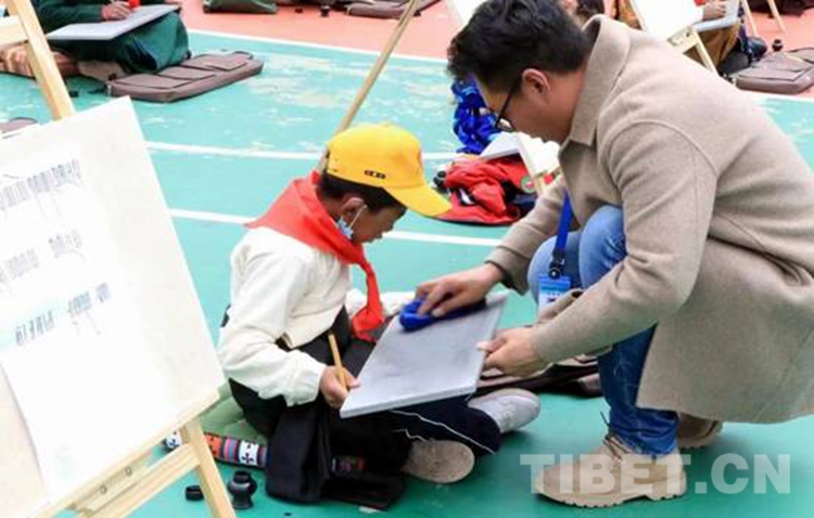 圖為西藏自治區(qū)那曲市比如縣羊秀鄉(xiāng)的學(xué)生正在創(chuàng)作美術(shù)作品 攝影:米瑪旺久