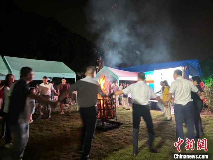 兩岸青年參加篝火晚會迎中秋。郭其鈺 攝