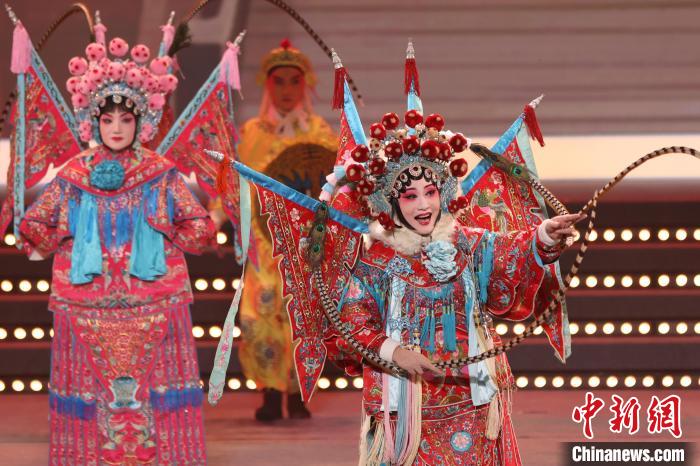 9月10日晚,2024江蘇中秋戲曲晚會(huì)在江蘇廣電荔枝大劇院上演,晚會(huì)緊扣“中秋”和“戲曲”兩大元素,將傳統(tǒng)節(jié)日內(nèi)涵與戲曲藝術(shù)融為一體,戲曲界各劇種名家陳少云、趙志剛、竺小招、周東亮、李奕潔、陳澄、李曉旭、施夏明等“梅花獎(jiǎng)”“紫金文化獎(jiǎng)?wù)隆薄拔娜A表演獎(jiǎng)”獲得者輪番登臺(tái),與近年來(lái)涌現(xiàn)出的優(yōu)秀青年演員同臺(tái)演出,凸顯戲曲文化的傳承與創(chuàng)新,為觀眾帶來(lái)一個(gè)流光溢彩的戲曲之夜。圖為“梅花獎(jiǎng)”得主許亞玲(右)表演淮海戲《樊梨花點(diǎn)兵》選段。 中新社記者 泱波 攝