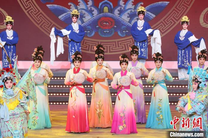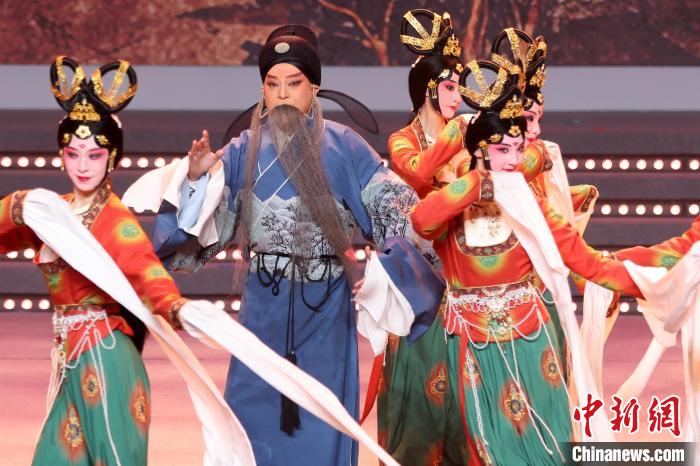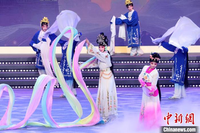 9月10日晚,2024江蘇中秋戲曲晚會(huì)在江蘇廣電荔枝大劇院上演,晚會(huì)緊扣“中秋”和“戲曲”兩大元素,將傳統(tǒng)節(jié)日內(nèi)涵與戲曲藝術(shù)融為一體,戲曲界各劇種名家陳少云、趙志剛、竺小招、周東亮、李奕潔、陳澄、李曉旭、施夏明等“梅花獎(jiǎng)”“紫金文化獎(jiǎng)?wù)隆薄拔娜A表演獎(jiǎng)”獲得者輪番登臺(tái),與近年來(lái)涌現(xiàn)出的優(yōu)秀青年演員同臺(tái)演出,凸顯戲曲文化的傳承與創(chuàng)新,為觀眾帶來(lái)一個(gè)流光溢彩的戲曲之夜。圖為戲曲演員們?cè)谖枧_(tái)上表演節(jié)目。中新社記者 泱波 攝