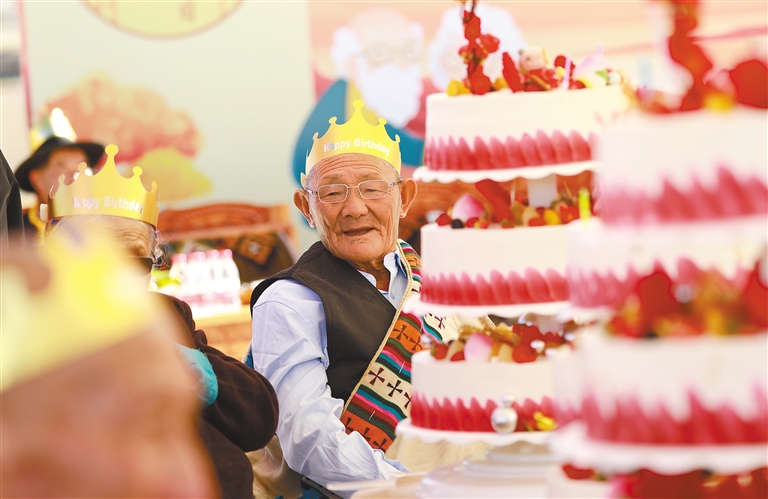 圖為拉薩市墨竹工卡縣民政局和退役軍人事務局舉行“我們的節(jié)日·重陽”主題活動,現(xiàn)場為老人們集體過生日。記者 唐斌 通訊員 洛克 攝