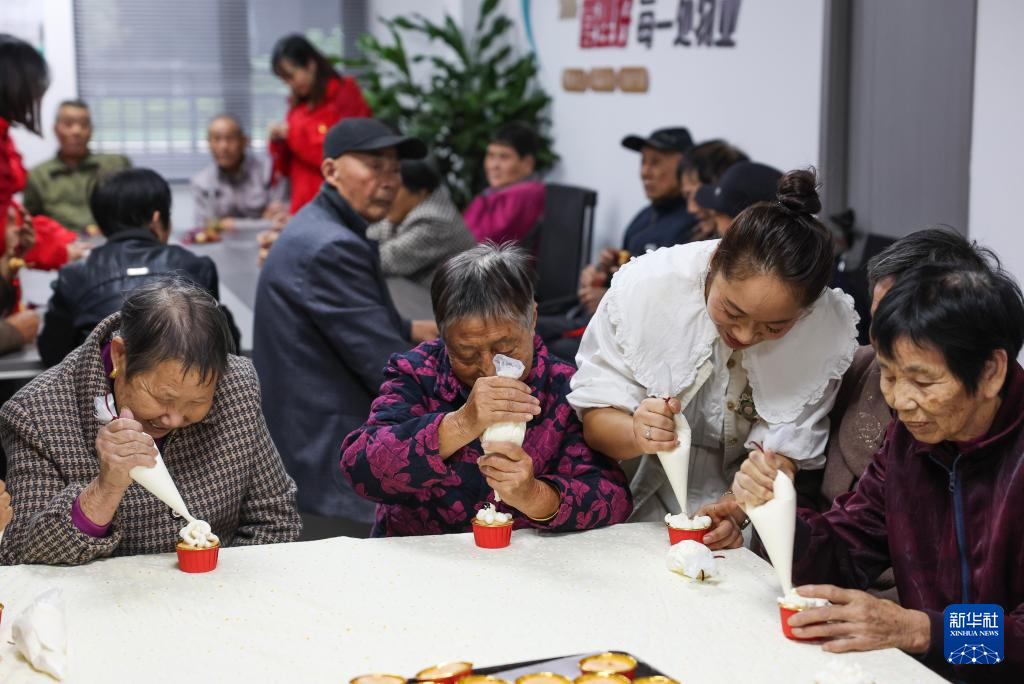 10月21日,志愿者在教老人制作紙杯蛋糕。新華社記者 徐昱 攝
